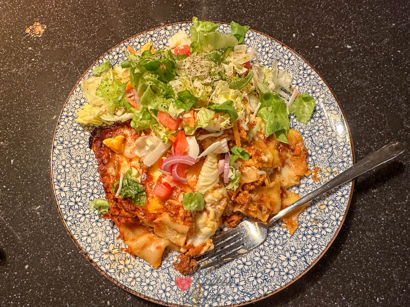 Lasagne bolognese met bechamelsaus werd er ook gegeten in de kerstvakantie. Met een lekkere salade erbij. Ik houd er zo van!