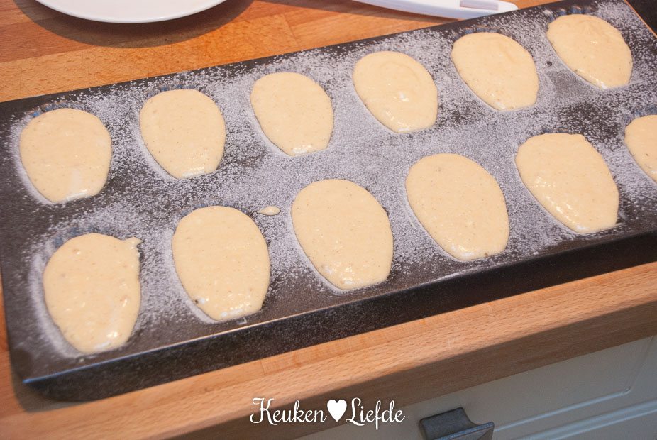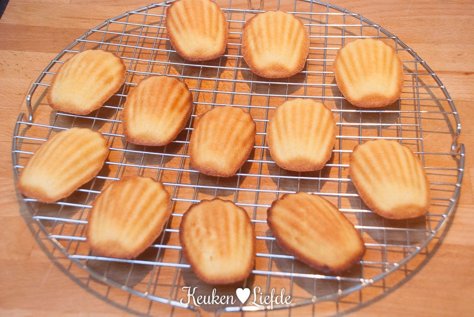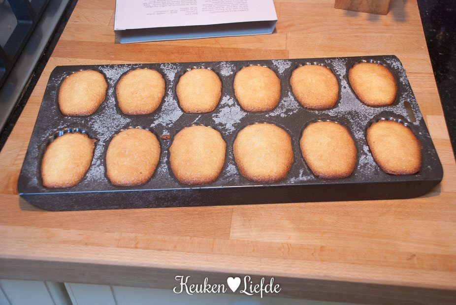 Beslag van Madeleines hoort minstens een uur in de koelkast op te stijven, daarna in de vorm en direct in een hete oven. Dit zorgt voor het zogenaamde “buikje”(bolle kant) waar de cakejes beroemd om zijn. Ik mis dat in jou recept.