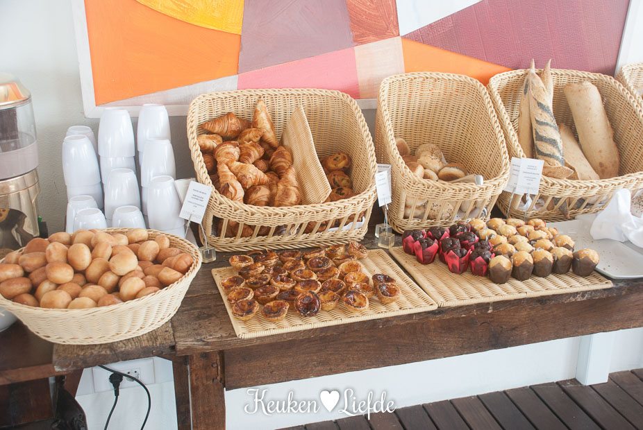 - Croissants, koffiebroodjes, muffins, Pastel de Nata, mini-donuts en verschillende soorten brood
