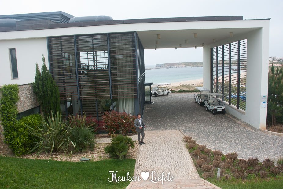 Na de lunch kunnen we uitbuiken. Er is alle tijd van de wereld voor het volgende programma begint. Ik luier en kuier met Ella-Marie over het 700 meter lange zandstrand pal gelegen voor Martinhal. Betoverd kijken we naar de hoge golven met witte schuimkraag, die met luid geweld breken op de branding. Dit spektakel kan ik wel uren in me opzuigen.