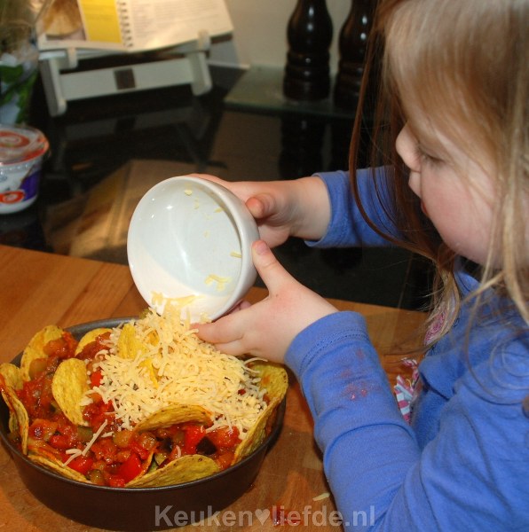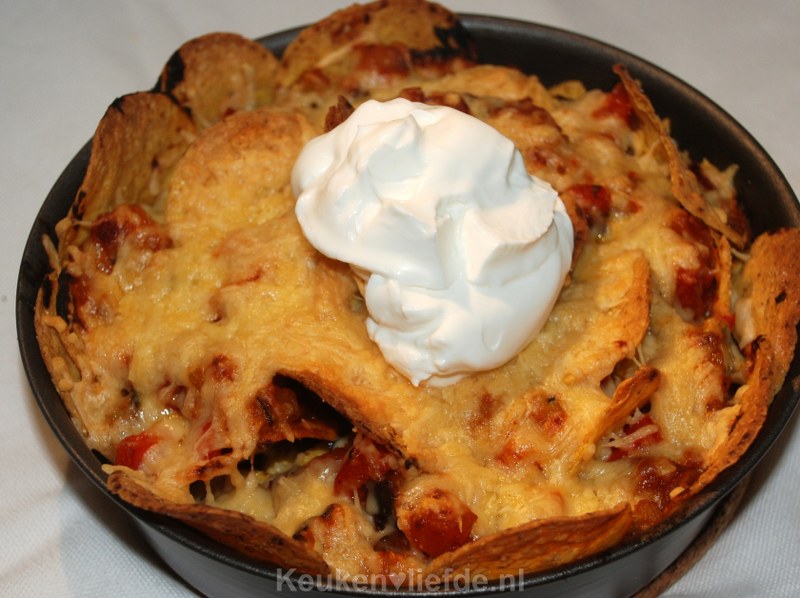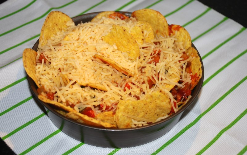 Deze Mexicaanse ovenschotel met tortillachips is heerlijk voor zowel jong als oud! Kinderen vinden dit recept geweldig omdat er chips in zit en nemen daardoor de groenten in de saus voor lief. Snijd de groenten het liefst zo klein mogelijk. Kinderen zullen het dan makkelijker opeten. Dit is een vegetarisch gerecht, maar je kunt natuurlijk gehakt of ander vlees naar keuze toevoegen voor een niet vegetarische variant.