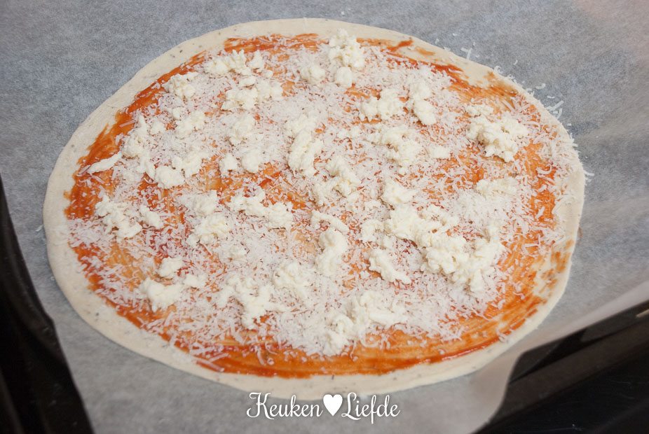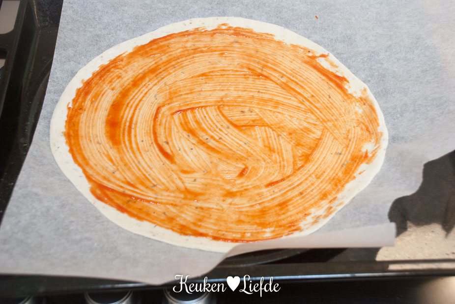 - 1 grote pizzabodem (kant-en-klaar, of zelfgemaakt)