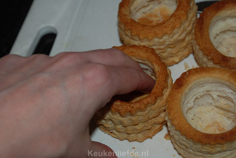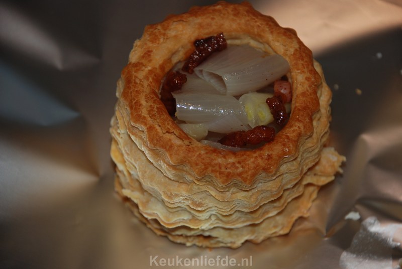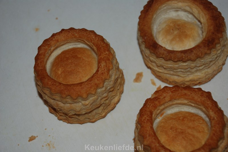 Het recept is van de AH website en kun je hier nalezen. Omdat wij dit gerecht al meerdere keren hebben gemaakt heb ik het hier en daar iets aangepast. Als voorgerecht is één pasteibakje per persoon voldoende maar als je 3 pasteibakjes per persoon geeft kun je het zelfs als hoofdgerecht eten. Dat deden wij dus deze keer. Onderstaande hoeveelheden zijn bedoeld als voorgerecht voor 4 personen of als hoofdgerecht voor 2 personen.
