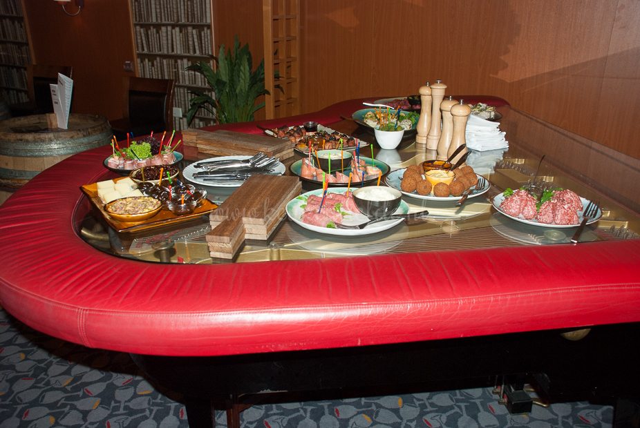 Na lichaam en geest opgefrist te hebben, wandel ik samen met de anderen naar de Compass Bar. Er wacht ons een exclusieve tasting met champagne en hapjes. Beter had de minicruise niet kunnen beginnen!