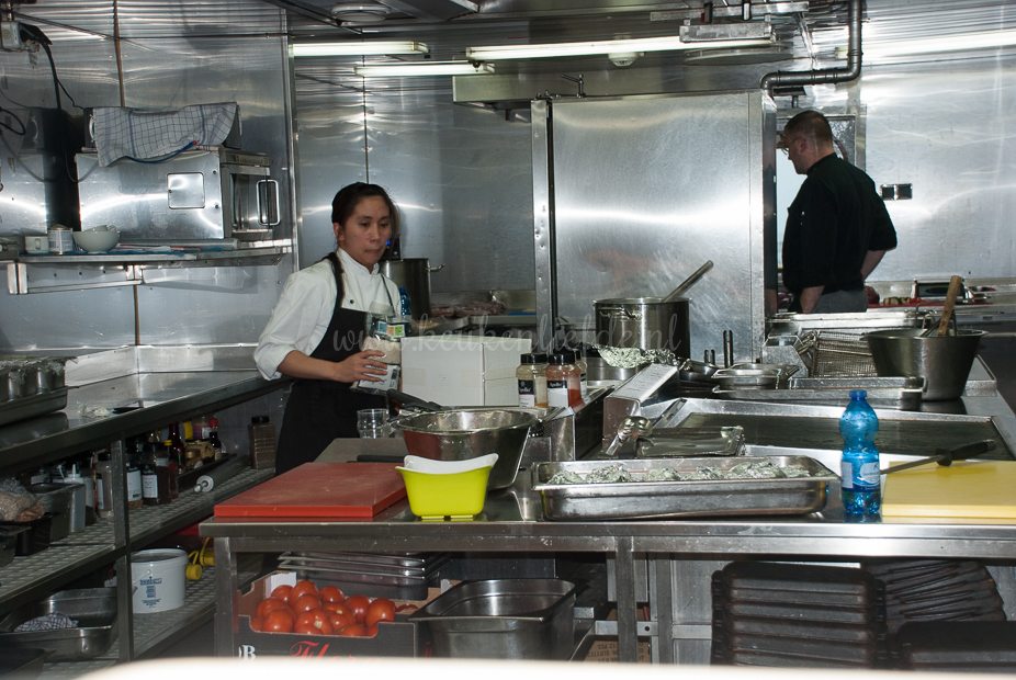 Terwijl mijn tong en smaakpapillen nog volop genieten, maken we ons klaar voor een rondleiding. Chef de cuisine Horst laat ons enthousiast alle hoeken van de keuken zien. En die keuken is niet de minste. Sterker nog, er zijn meerdere keukens. Verdeeld over alle keukens werken circa 38 koks!