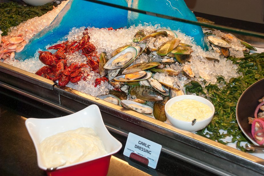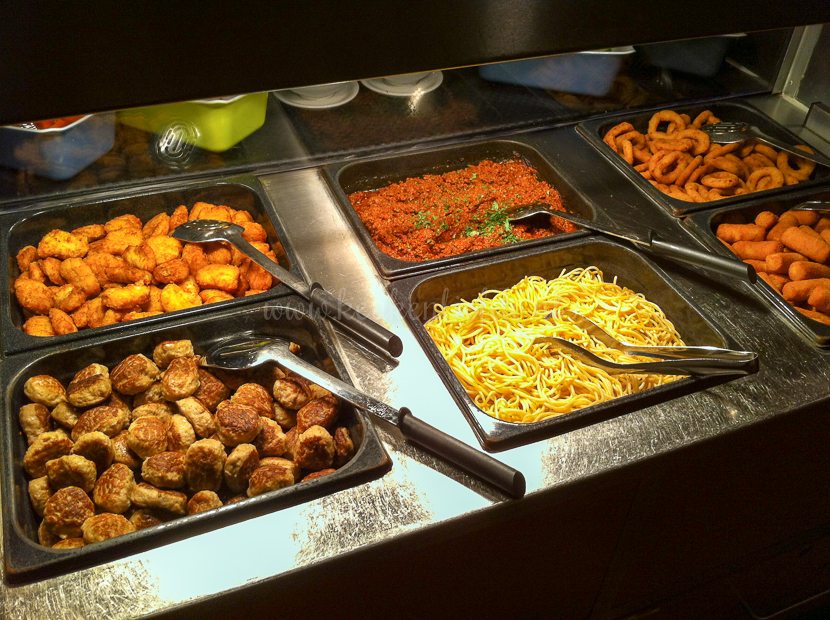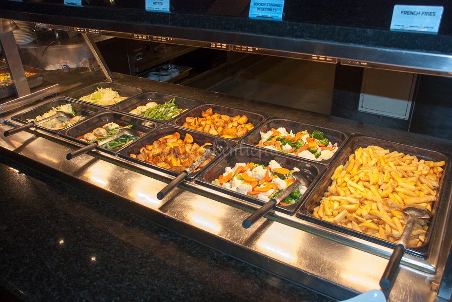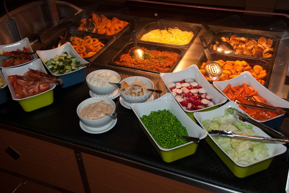 Naast de Blue Riband zijn er nog twee restaurants aan boord: het Explorers Steakhouse en het 7 Seas Buffetrestaurant. Laatstgenoemde heeft een superuitgebreid dinnerbuffet. Hier kijk je je ogen uit! Er is bovendien een waanzinnig kinderbuffet waar ik mijn dochter gegarandeerd nooit meer vandaan had gekregen.
