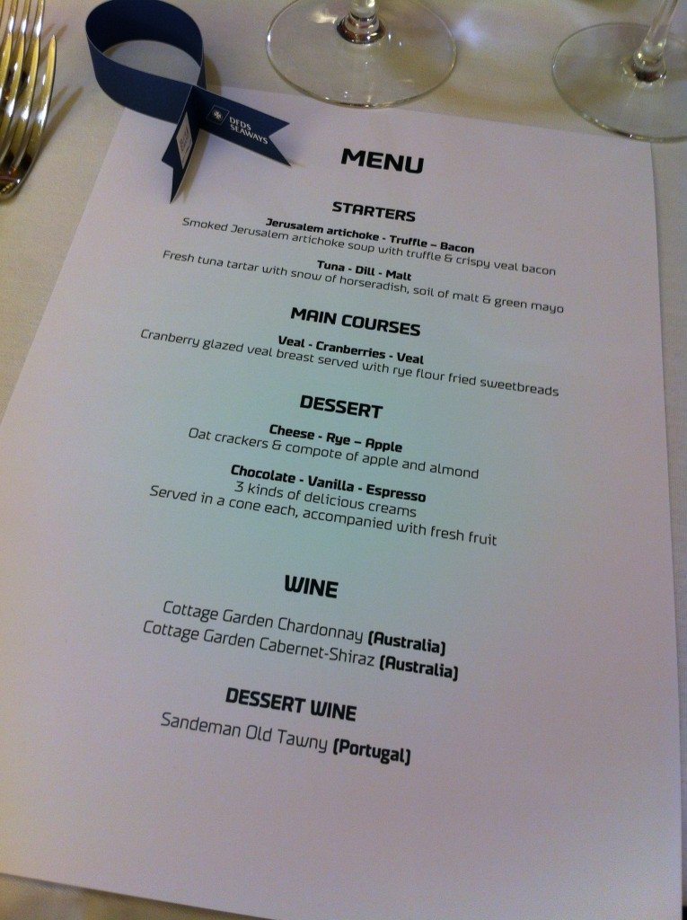Om zeven uur ’s avonds schuiven we voor de tweede keer(!) aan in het Blue Riband-restaurant. Maar nu voor een diner van maar liefst vijf gangen. Het zalige Chef’s Menu is wederom een feest voor al je zintuigen!