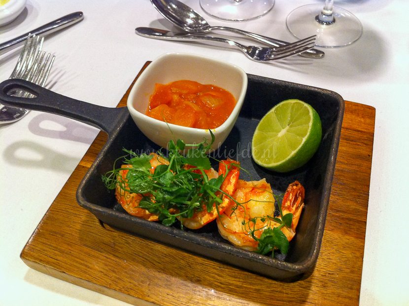 - In limoen gemarineerde, gebakken gamba’s met tomatensalsa