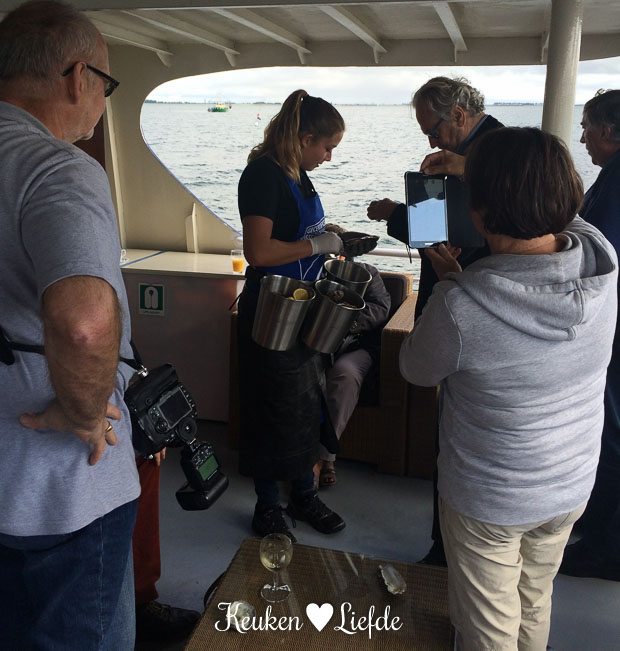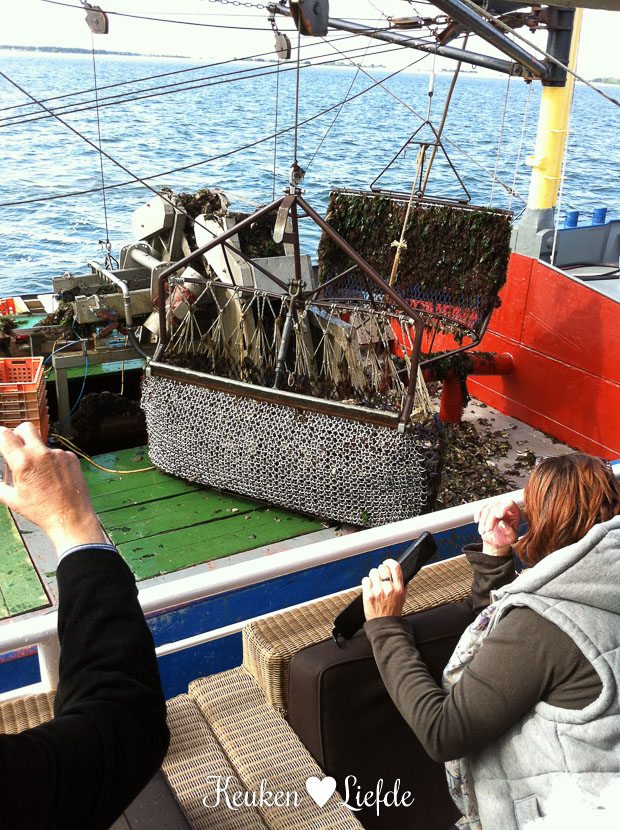 Maar ondertussen zijn de oesters al aan boord gebracht. Tijd om te proeven!