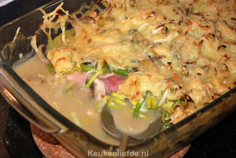 Deze ovenschotel met prei, champignons en ham/kaasrolletjes is echt ontzettend lekker, goedkoop en makkelijk om te maken. Je hoeft de groenten niet eerst voor te koken of te bakken, ze garen in de saus, in de oven. Serveer dit gerecht met wat gekookte rijst of pasta en je hebt een complete en makkelijke maaltijd.