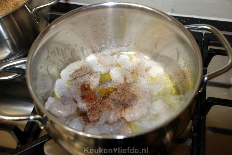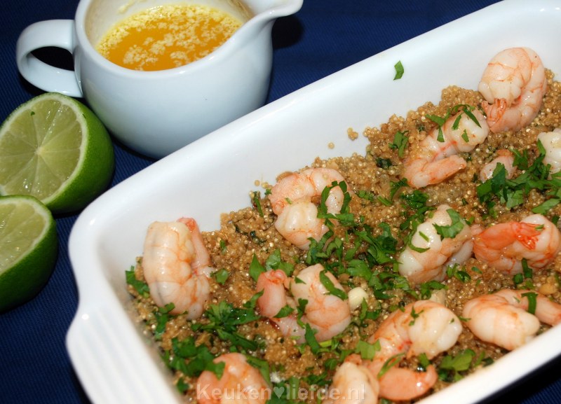 Quinoa met knoflookgarnalen en botersaus