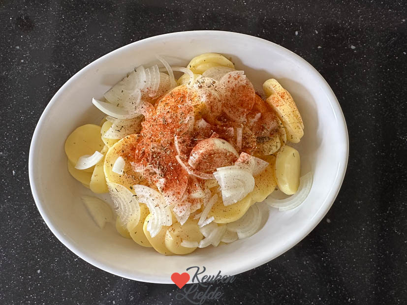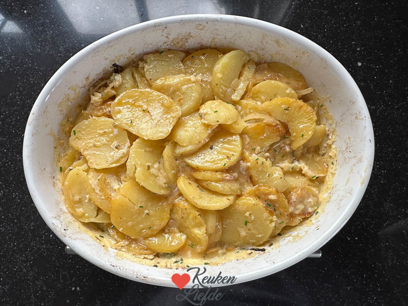 Aardappel tortilla ovenschotel. Een leuke variant op de klassieke, Spaanse aardappeltortilla is deze aardappel tortilla ovenschotel. Een heerlijke ovenschotel met gebakken aardappelschijfjes en ei. Lekker als onderdeel van het hoofdgerecht met een stukje vis, kip of vlees en groenten erbij. Voor dit recept heb je geen pan nodig. De oven doet al het werk!
