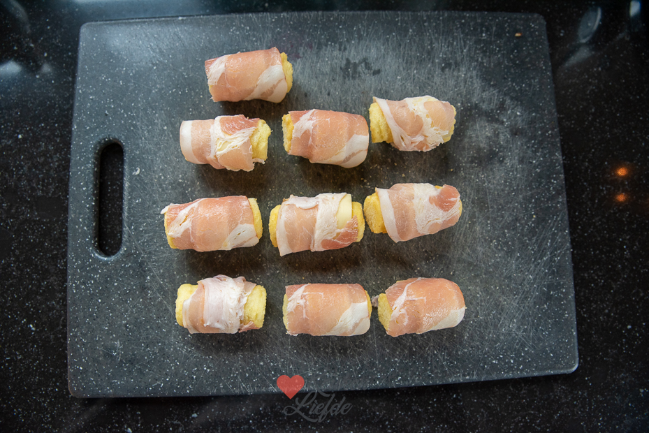 Wees gewaarschuwd, deze aardappelkroketjes omwikkeld met kaas en spek zijn verslavend lekker! Wij serveren ze graag bij een stukje vlees of kip en wat groenten, maar je kunt ook als hapje of snack serveren. Geef er dan een dipsaus bij gemaakt van twee delen barbecuesaus en één deel mayonaise.