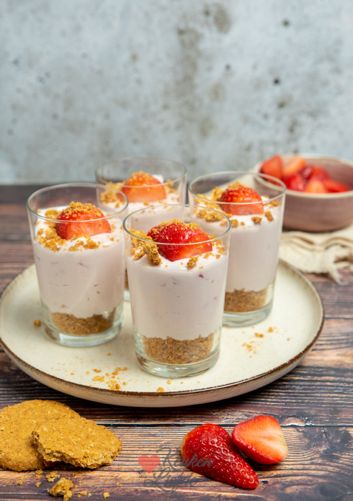 Aardbei kwarktaart glaasjes