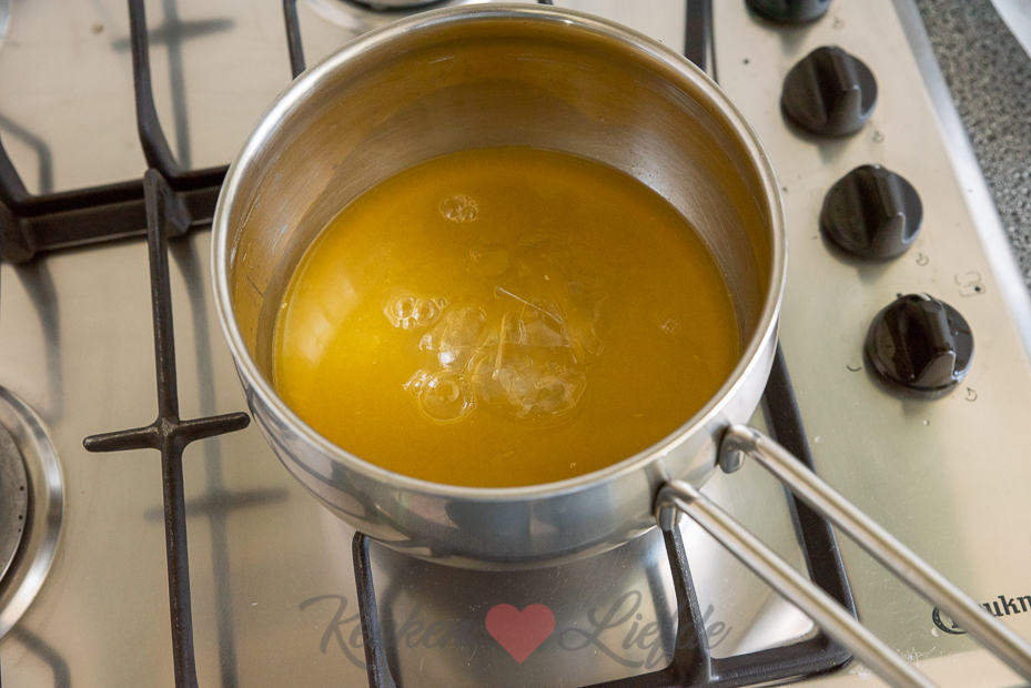 Week de blaadjes gelatine circa 10 minuten in een kom met koud water. Vet de springvorm in met wat olie of boter. Ik beklede de bodem met bakpapier maar dit is niet nodig.