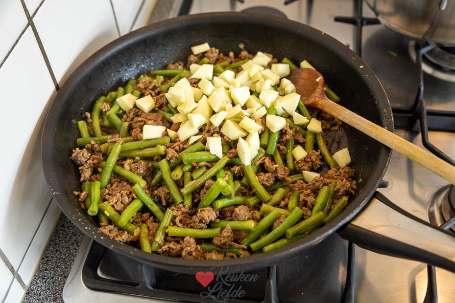 Ik ben dol op Wereldgerechten. Vroeger maakte ik deze Zuid-Afrikaanse bobotie schotel met rundergehakt, appel en sperziebonen uit een pakje totdat ik ontdekte dat zelf bobotie maken helemaal niet moeilijk is. En als je het mij vraagt ook veel lekkerder dan uit een pakje!