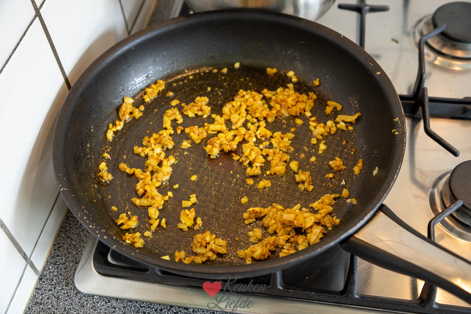 Voor dit heerlijke bobotie recept heb je geen waslijst met specerijen of kruiden nodig, alleen kerriepoeder, verse gember en een bouillontablet. Kerriepoeder heeft (bijna) iedereen in zijn keukenkastje staan en gemberwortel kun je makkelijk invriezen. Gewoon bevroren met schil raspen wat je nodig hebt en weer terug doen in de vriezer. Zo heb je altijd verse gember bij de hand. De groentebouillontablet zorgt ervoor dat het gerecht meteen goed op smaak is.