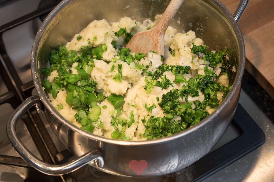 Voor deze stamppot kook ik de aspergebroccoli kort in een aparte pan en hak ze dan grof. Zo behouden ze hun prachtige groene kleur en lekkere bite. De combinatie met groene pesto en gebakken kipfilethaasjes maken deze stamppot tot een heerlijk alledaags gerecht dat razendsnel op tafel staat.