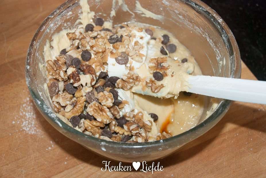 Bananenbrood Chunky Monkey Style – Dit bananenbrood is geïnspireerd op mijn liefde voor Chunky Monkey Ice Cream: Romig bananenijs van Ben & Jerry’s gevuld met knapperige walnoot en grote brokken karamel en chocolade.