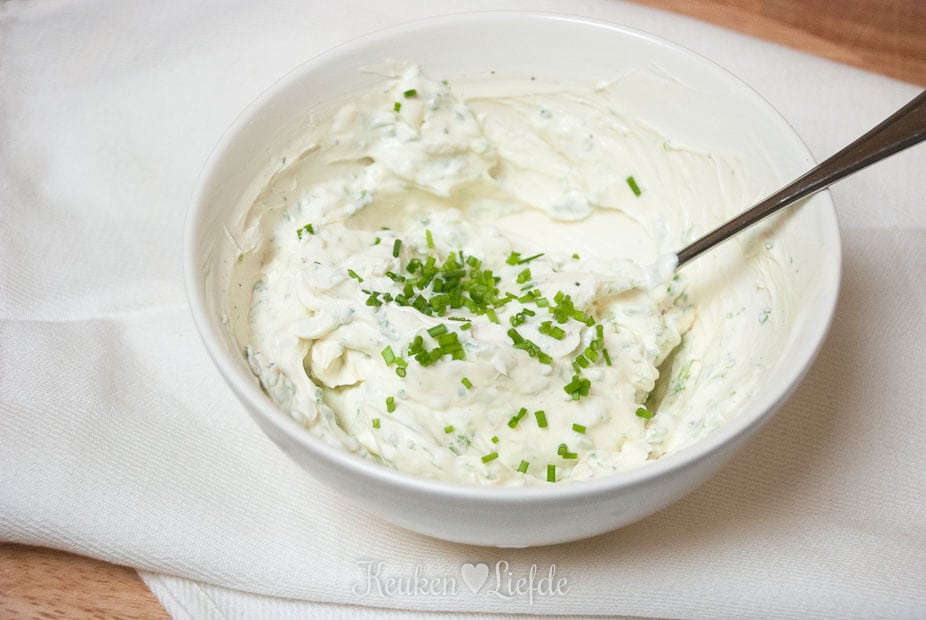 Omdat jullie nog een kookfilmpje van me tegoed hadden (Op facebook reageerden jullie superenthousiast op de sneak preview van het allereerste K♥L kookfilmpje: de stroganoff-gehaktschotel. Echter, het eindresultaat daarvan was bedroevend; het blijkt dat het opnemen van een kookfilmpje een compleet andere aanpak en voorbereiding vereist dan het maken van stap-voor-stap foto’s), besloot ik een filmpje te maken van deze bieslookroomkaas. Heerlijk eenvoudig en makkelijk te maken, dus kan er weinig misgaan. Hoewel… Kijk maar mee!