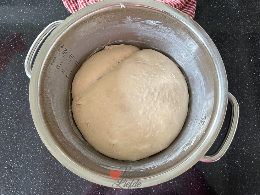 Hoewel ik prima kan vlechten, vond ik het vlechten van dit brood nogal een uitdaging. Maar, oefening baart kunst dus de volgende keer (want dit smaakt naar meer) gaat dat vast beter. De smaak is er gelukkig niet minder om.