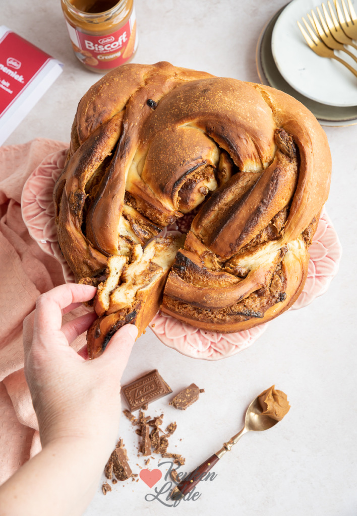 Een heerlijk, gevlochten zoet en luchtig brood gevuld met romige Biscoff speculoospasta en Biscoff melkchocolade met crunchy speculoosstukjes. Geloof me, dat is nog lekkerder dan het klinkt!