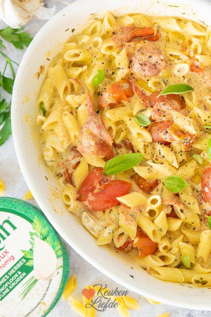 Ik gebruik in dit recept Boursin maar je kunt ook andere kruidenroomkaas gebruiken. Elk merk is eigenlijk prima dus kies degene die jezelf het lekkerst vindt.