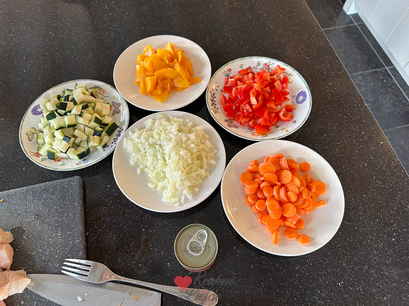 - 3 kipfilets, in blokjes gesneden