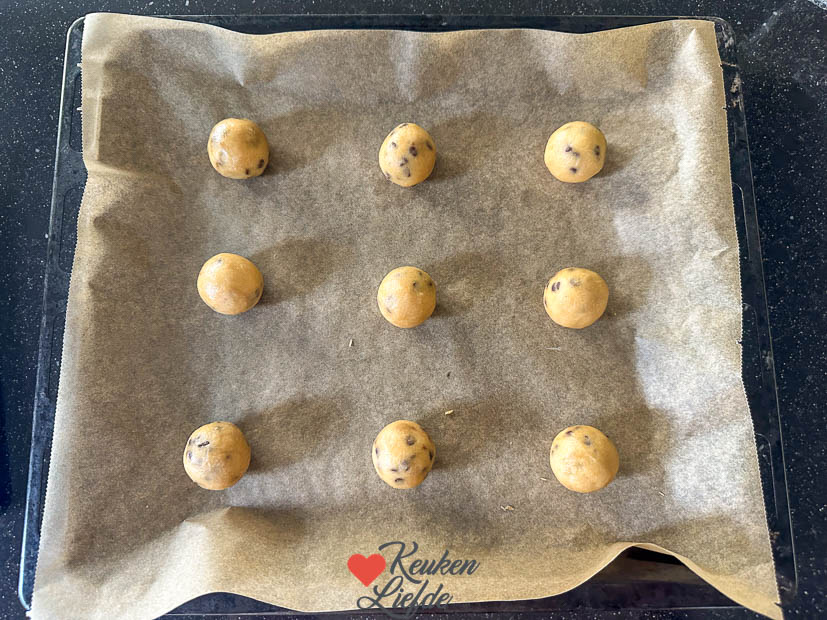 Met dit recept bak je zo’n 27 tot 30 koekjes. Dat zijn zo’n 3 bakblikken vol. Genoeg dus voor iedereen. Wil je ze niet allemaal tegelijk bakken? Je kunt de helft van het deeg (goed verpakt) ook bewaren in de koelkast (enkele dagen) of in de diepvries (enkele maanden).