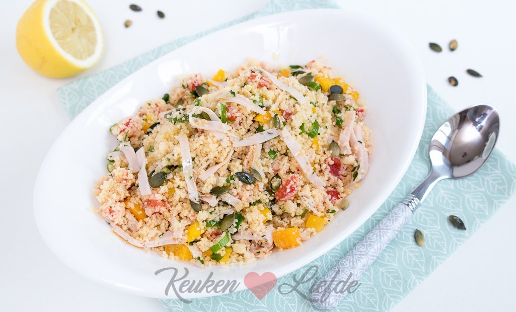 Deze couscoussalade met reepjes kalkoenfilet en knapperige, zoete paprika smaakt heerlijk als lunchgerecht, of serveer lauwwarm als lichte avondmaaltijd met een stukje vis of kip. Hij staat binnen 15 minuten op tafel!