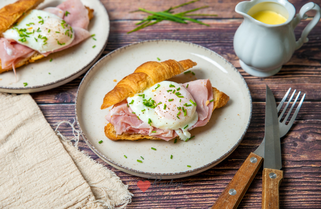 Een lekkere variant op de klassieke eggs benedict waarbij ik het geroosterde broodje vervang door een croissant. Deze croissant benedict met ham, gepocheerd ei en hollandaisesaus moet je zeker proberen. Hij is verrukkelijk! Je kunt de ham ook vervangen door gerookte zalm. Lekker als ontbijt of lunch, maar ook een heerlijk verwengerecht om te serveren met Pasen, Vader-, of Moederdag.