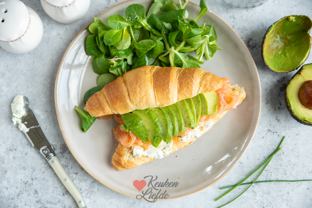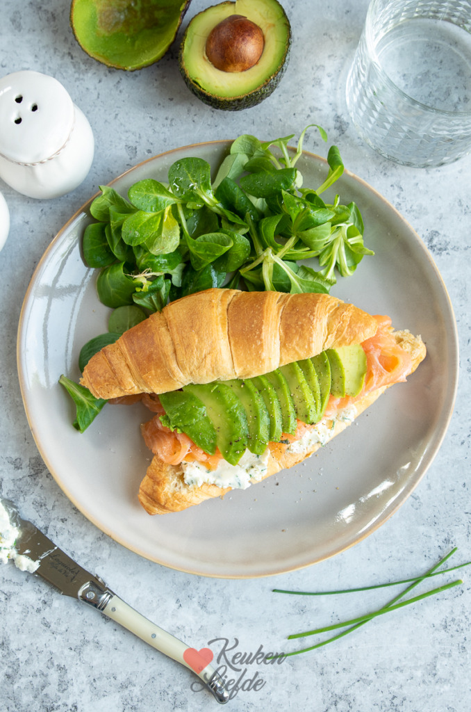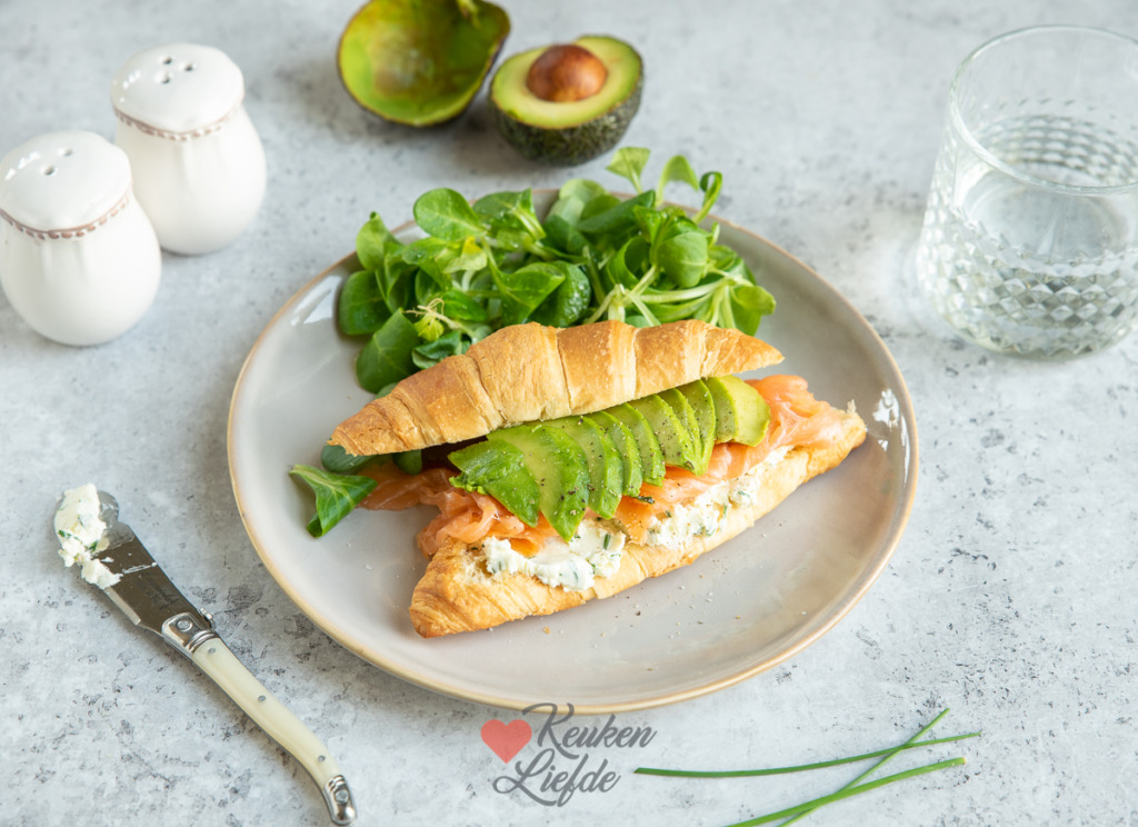 Voor een lekkere, luxe lunch hoef je de deur niet uit. Deze croissant met roomkaas, zalm en avocado maak je heel eenvoudig zelf. Een op en top verwengerecht voor jezelf of iemand die je lief hebt.
