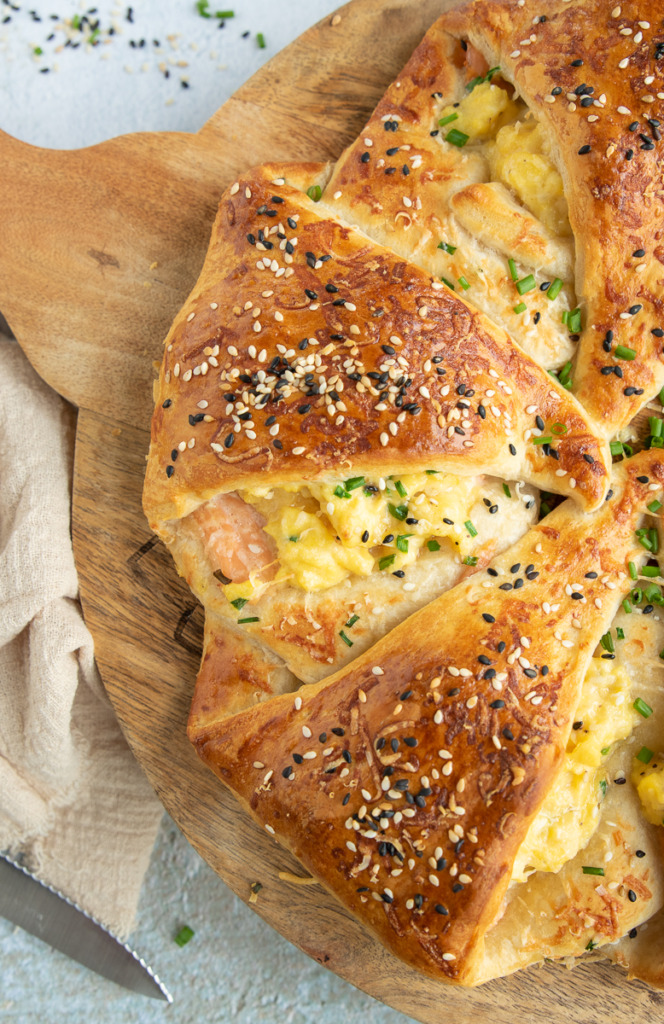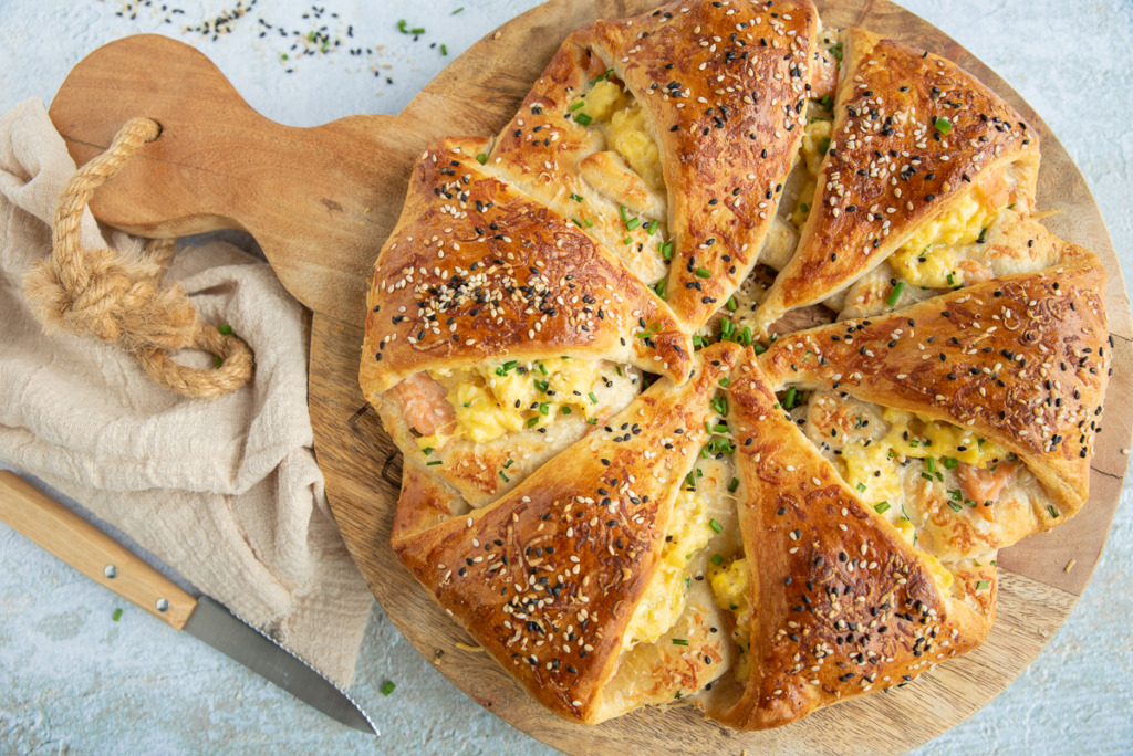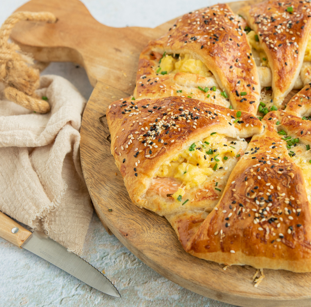 Croissantkrans met roerei en zalm