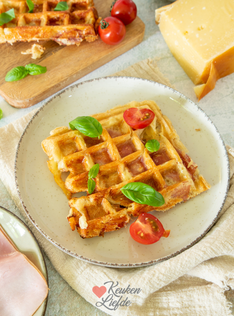 Met croissantwafels kun je eindeloos variëren. Eerder maakte ik deze croissantwafel met aardbeien en slagroom. Dit keer ging ik ging aan de slag met een hartige variant en vulde het croissantdeeg met ham en kaas. Ook deze zijn heerlijk. Serveer als ontbijt of lunch met wat verse basilicum en cherrytomaatjes erbij, maar ook lekker als avondeten met een kom verse tomatensoep.