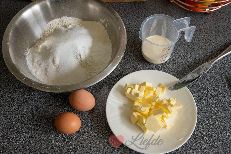 - 75 g ongezouten roomboter, koud en in kleine blokjes