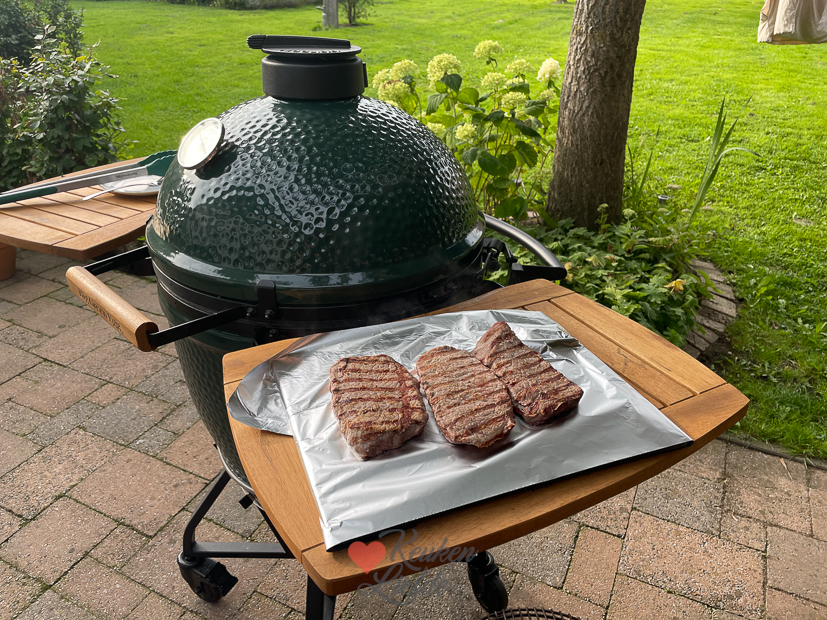 Zondag is onze vrije dag en raken we geen computer aan. Heeeeerlijk! Johan en ik spendeerden de hele dag met rommelen in de tuin. ’s Middags werd er F1 gekeken en stak Johan de EGG aan voor lekker diner. Hij bereidde krieltjes, maiskolven, groene asperges en biefstuk op de EGG en serveerde er hollandaisesaus bij. Goddelijk smaakte het!