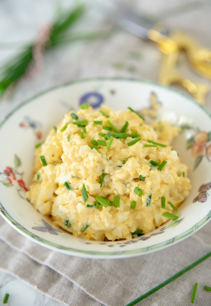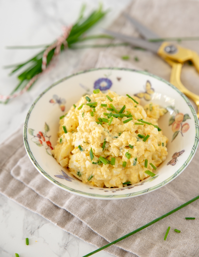 Eenvoudiger dan dit worden de recepten niet op KL! 🙂 Deze eiersalade met kerrie en bieslook is al jaren mijn favoriete borrelsalade om op een toastje te smeren. Lekker bij de borrel of op een verjaardag. Ondanks dat het recept supersimpel is, blijft het een van mijn favorieten.Â