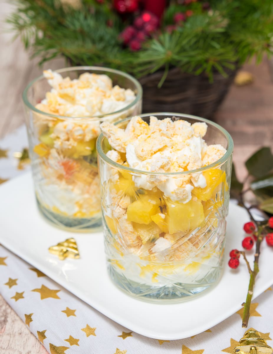 - 250 g tropisch fruit mix (bv. mango, kiwi en ananas), schoongemaakt en kleingesneden