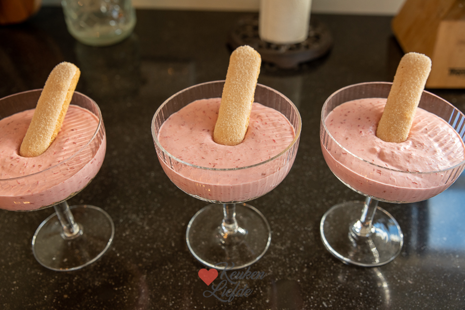 Steek in elk glas een lange vinger in de mousse. Laat minimaal 30 minuten opstijven in de koelkast.