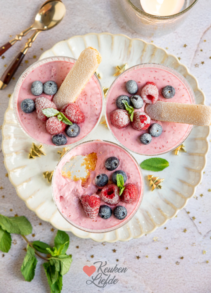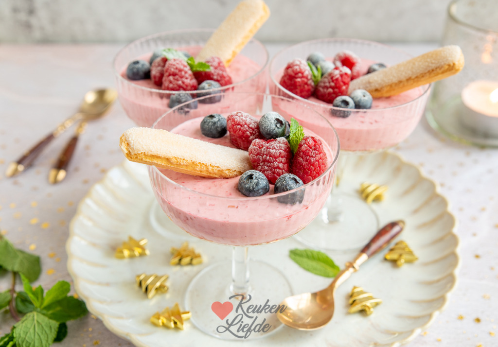 Ben jij dit jaar aan de beurt om het kerstdessert te maken? Maak het jezelf makkelijk met dit frambozenmousse toetje met lange vingers. Dit heerlijke dessert kun je van tevoren al maken. Moment suprême hoef je hem alleen maar te garneren met vers fruit en te bestrooien met poedersuiker.