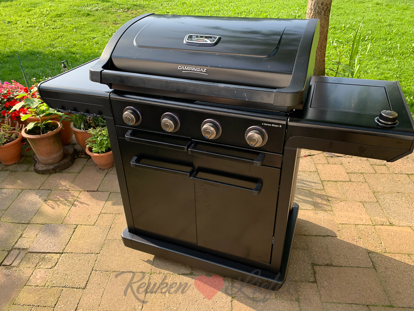 Ik maakte deze kipspiezen op de Campingaz 4 Series Onyx S gasbarbecue die wij onlangs kregen van Campingaz samen met drie accessoires: een paellapan, een rotisserie kit en een pizzasteen. Inmiddels hebben wij de barbecue al goed kunnen testen. Ook de accessoires heb ik allemaal al gebruikt en de recepten die ik hiermee maakte (paella, rotisserie kip en pizza van de barbecue) ga ik binnenkort met je delen. Tot nu toe zijn wij heel enthousiast over de barbecue die vol zit met handige snufjes. Zo zorgt het InstaClean® Aqua ervoor dat de barbecue heel makkelijk schoon te maken is. Het Blue Flame Power System creëert minder vlammen waardoor het eten beter bereid wordt en het ziet er ook nog eens heel tof uit. En tot slot het Culinaire Modulaire Systeem waarbij je een deel van het rooster weg kunt nemen en hier een van de accessoires in kunt plaatsen zoals bijvoorbeeld de paellapan. De barbecue is dus heel breed inzetbaar en eigenlijk meer een complete buitenkeuken dan alleen een barbecue. Wij zijn er heel blij mee!