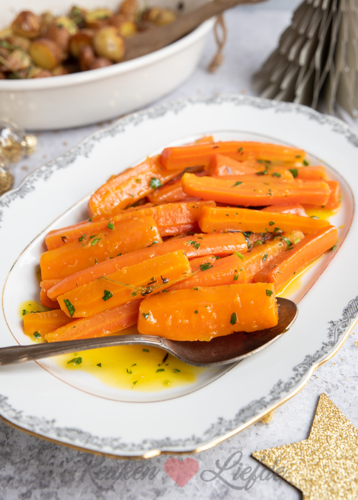 Deze gestoofde wortel met sinaasappel en honing is het perfecte bijgerecht om met kerst te serveren. Heerlijk bij gebraden kip, boeuf bourguignon, konijn, of wild zoals hert of wildzwijn. Je kunt de wortel van tevoren al maken en moment suprême nog even (op laag vuur) opwarmen.