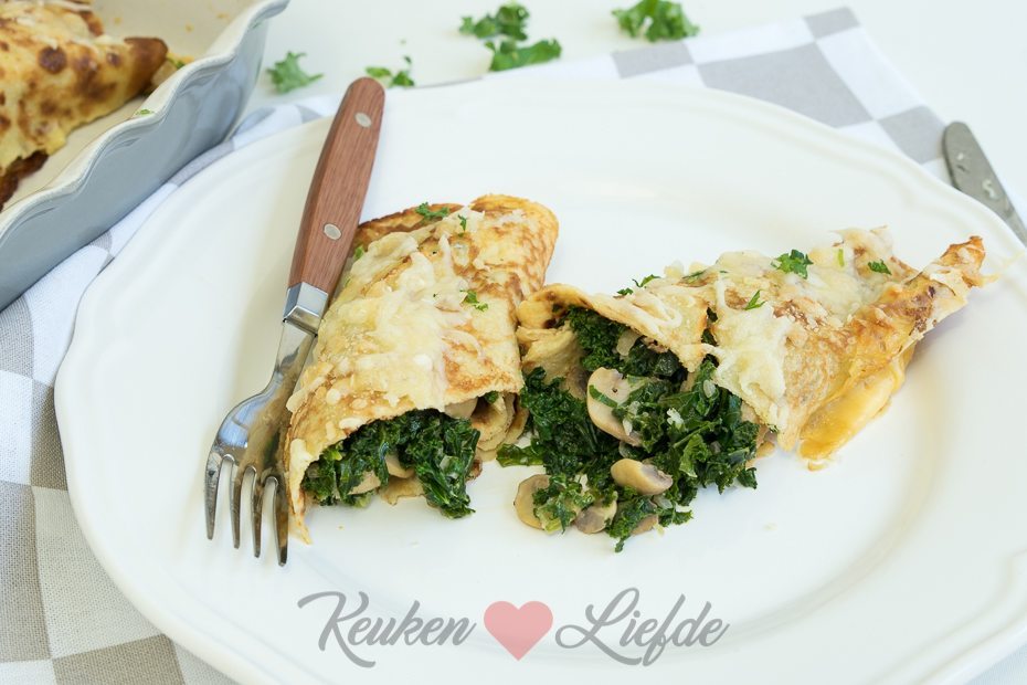 Onlangs had Johan pannenkoeken gebakken en omdat er behoorlijk wat over waren vroor ik ze in. Een pannenkoek op zijn tijd kan ik wel waarderen, maar nog liever eet ik een gevulde, hartige pannenkoek. Zo maakte ik eerder al pannenkoeken gevuld met spinazie, ricotta en ham. Zó lekker! Het recept vind je hier.