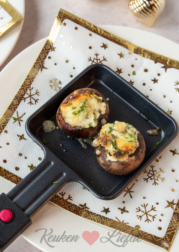 Weet jij ook nooit zo goed wat je tijdens het gourmetten met die pannetjes aan moet? Wat denk je van deze met roomkaas gevulde champignons! Ook fijn, je kunt ze ruim van tevoren al maken. Tijdens het gourmetten kan iedereen een gevulde champignon in zijn pannetje leggen en bereiden onder de grill. Leuk en lekker!