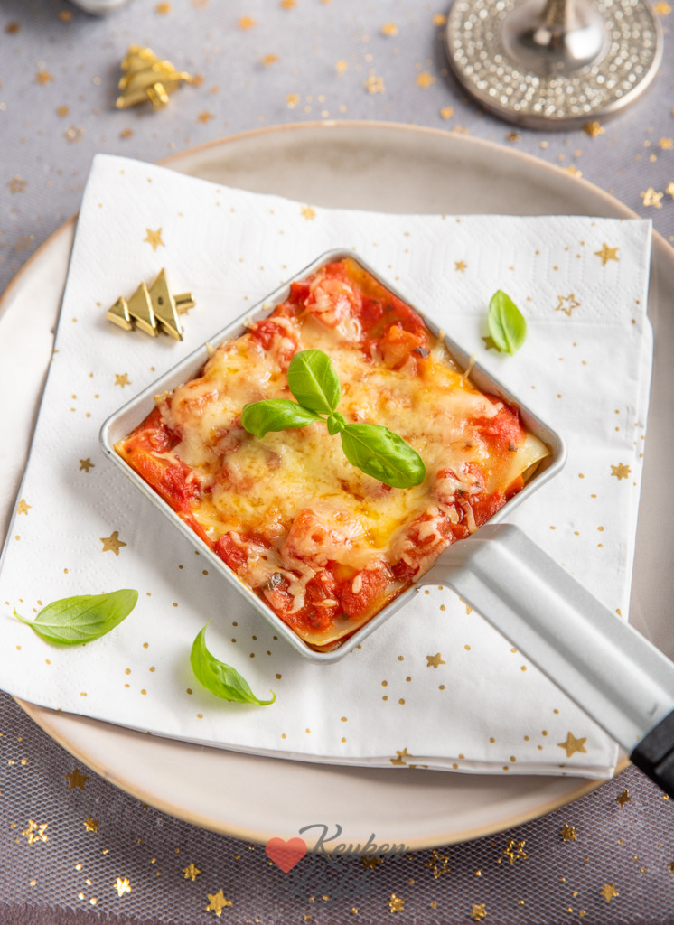 Op de valreep heb ik nog een allerlaatste kerst-gourmetrecept voor je: een gourmetpannetje lasagne! Deze kun je perfect maken onder de grill van je gourmetset. Met maar drie ingrediënten (voorgekookte lasagebladen, pastasaus en geraspte kaas) maak je al een heerlijke basis lasagne.