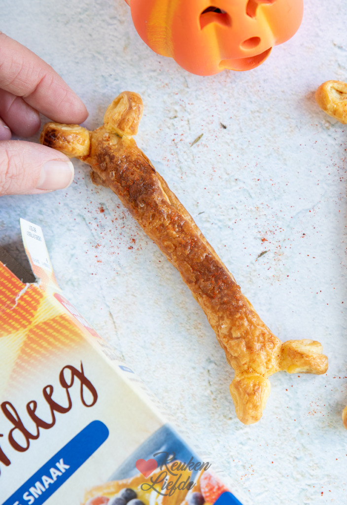 Deze botten zijn niet voor de hond maar om zelf van te genieten. Een leuk hapje voor Halloween! Je maakt ze heel eenvoudig van bladerdeeg. Met wat specerijen zoals paprikapoeder en cayennepeper maak je er een heerlijk, hartig hapje van voor op de borrelplank, of serveer ze bij een kom pompoensoep