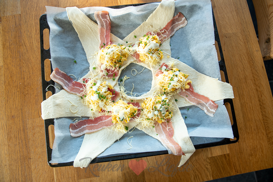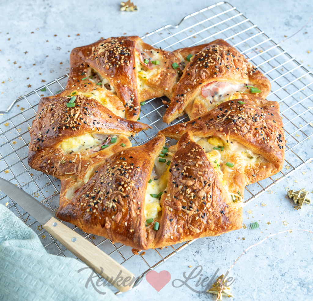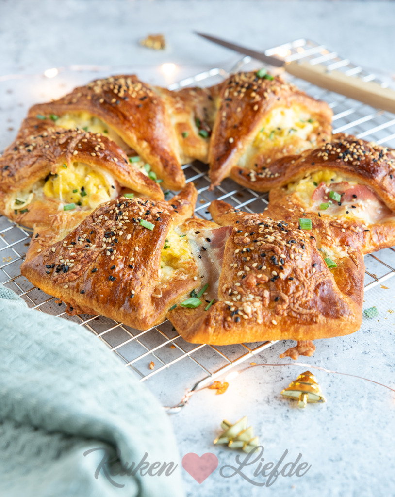 Samenwerking — Een feestelijk ontbijt maken voor kerst? Deze hartige croissantkrans met roerei en ontbijtspek is makkelijk om te maken en smaakt verrukkelijk. Bovendien ziet hij er prachtig uit. Wil je het jezelf met kerst nog gemakkelijker maken, dan kun je hem al een dag van tevoren maken. Moment suprême warm je hem afgedekt met aluminiumfolie weer even op in de oven; circa 20 minuutjes op 175 graden. Hij smaakt dan weer als versgebakken.