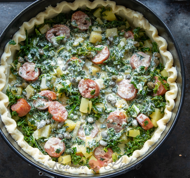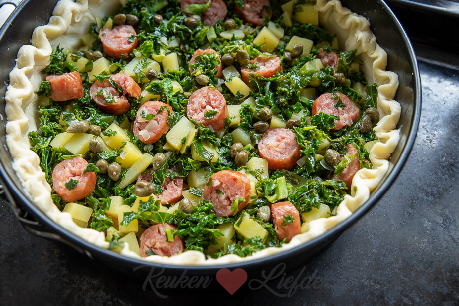 Hartige taart met boerenkool en rookworst