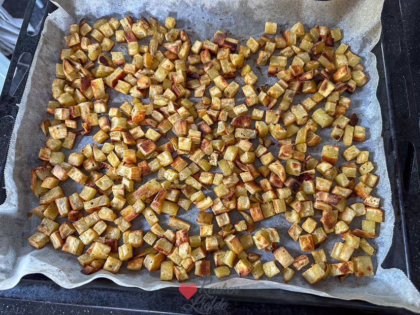 De Hüttenkäse geeft een romig accent en de zoet-pittige honing geeft het gerecht een lekkere kick.