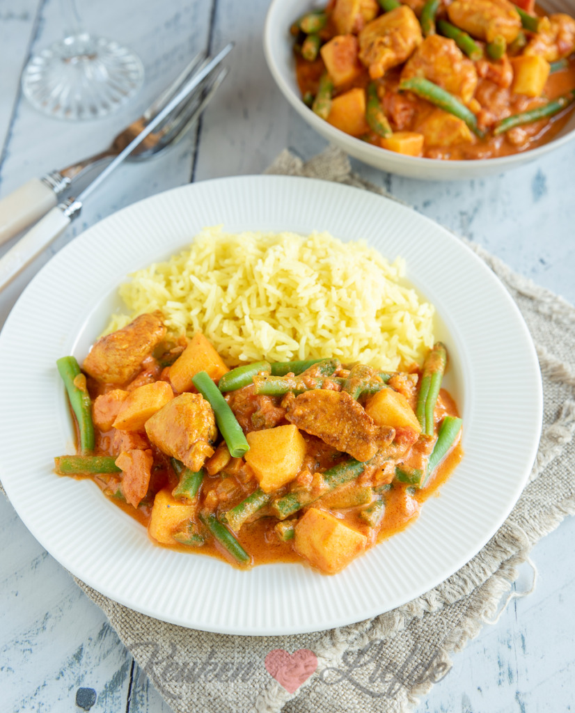 - 400 g kipfilet, in blokjes gesneden (je kunt ook kipdijfilet gebruiken, zie tip 1)